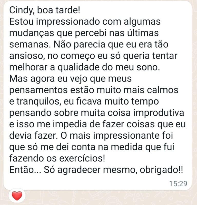 A boa notícia é que depois de anos de prática com pacientes que resolveram sintomas de ansiedade, inclusive alguns com problemas que já estavam se manifestando no corpo físico, o Instituto CurAtividade, em parceria com o Instituto Sorocabano de Programação Neurolinguística desenvolveu um método de auto aplicação de técnicas específicas.